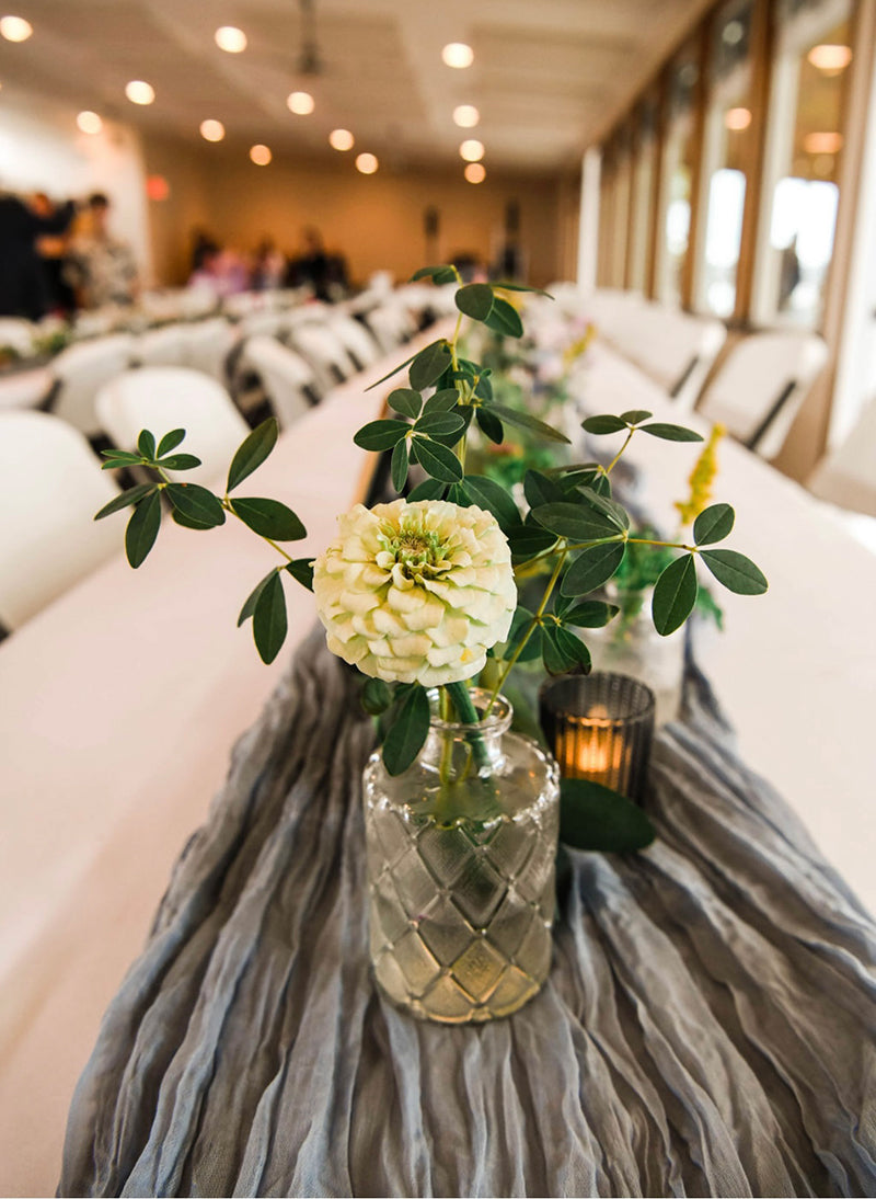 "Thank you so much for the beautiful flowers for our wedding. I was blown away by the arrangements you created, and the loose flowers were a wonderful accent on every table throughout the reception. Thank you for making such an important part of my vision come true!"